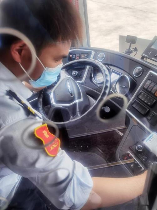 新區(qū)公司1780車駕駛員白延奇駕駛的19路線,由銅山新區(qū)總站發(fā)往徐州火車站,全程接近30.5公里,途徑居民區(qū)、學(xué)校眾多,每天要跑3趟,6個(gè)單程,不堵車的時(shí)候一個(gè)單程需要一個(gè)小時(shí)。“由于工作的特殊性,即便天氣再熱我們也不敢多喝水,早晚高峰堵車至少得1個(gè)多小時(shí)才能回到主站,只有到終點(diǎn)站才能多喝幾口水,抓緊時(shí)間上個(gè)廁所?!?/span>駕駛員白延奇這樣說(shuō)道。為了給市民乘客提供溫馨、舒適的車廂環(huán)境,每天朝陽(yáng)還未升起,白延奇就到達(dá)停車場(chǎng),檢查車輛狀況、擦拭發(fā)動(dòng)機(jī)、刷洗輪胎、打掃車輛衛(wèi)生,在確保“五凈一亮”的同時(shí),對(duì)車廂進(jìn)行全面消毒,不一會(huì),白延奇的額頭就布滿了汗珠,身上的行業(yè)服早已濕透,緊緊地貼在皮膚上。