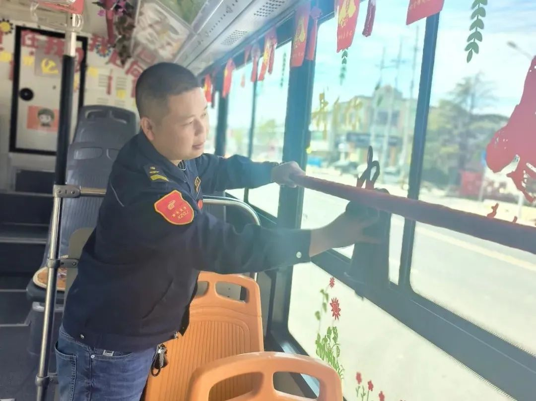 為了給乘客一個(gè)舒適的乘車(chē)環(huán)境,他總是想辦法把車(chē)輛布置得很溫馨。冬天他在車(chē)上張貼了紅色的窗花,在扶手上纏上暖暖的紅絲絨。春天張貼了柳葉、花草,讓車(chē)廂充滿(mǎn)春天的氣息。為了讓大家感受到雷鋒精神,他在車(chē)內(nèi)制作了以雷鋒精神為主題的標(biāo)語(yǔ)、拉手,在車(chē)前放置了便民箱,為乘客提供暈車(chē)藥、創(chuàng)可貼、針線(xiàn)包等物品。為慶祝建黨百年,王石龍把車(chē)廂裝扮成紅色宣傳車(chē),添置了紅色小人書(shū),自費(fèi)做了燈箱畫(huà)報(bào),并放置了醫(yī)藥箱、便民袋。在他的車(chē)廂里,可以讀到軍隊(duì)十大英模人物和雷鋒的先進(jìn)事跡,可以閱覽無(wú)償獻(xiàn)血宣傳畫(huà)報(bào)。今年國(guó)慶前期,王石龍自費(fèi)購(gòu)買(mǎi)了小禮物贈(zèng)與乘客,在清華中學(xué)定制公交上,王石龍還與同學(xué)生們一起,揮舞著國(guó)旗,共同慶祝祖國(guó)母親73歲華誕。