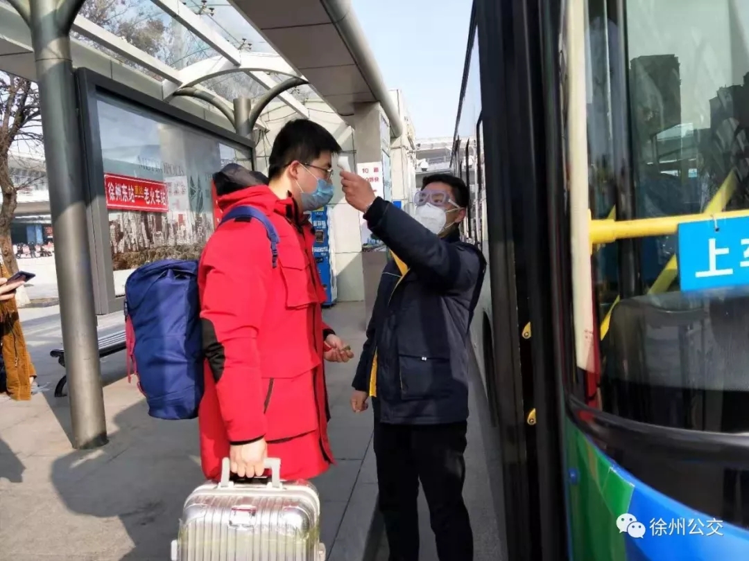 根據(jù)《徐州市新型冠狀病毒感染的肺炎疫情防控應(yīng)急指揮部通告(第1號)》,從1月27日(農(nóng)歷初三)開始,徐州全面暫停徐州市區(qū)城市公共交通(徐州東站至徐州站單向點對點接駁線路除外)和道路客運班線、包車運營(機場定制客運除外),徐州各縣(市、區(qū))也同時停止所有道路客運班線運營。“這8輛車是目前市區(qū)內(nèi)唯一還在運營的公交線路了,雖然乘客不多,但我們依然要做到萬無一失。”張經(jīng)理告訴記者,根據(jù)上級部門的要求,徐州公共交通集團順通巴士公司在疫情防控期間每天每班配備8輛車(分上午、下午、夜班三個班次),40余名駕駛員輪崗,運營時間為6:00-24:00(每天直到夜里高鐵運營結(jié)束)。這8輛車的運行路線為高鐵徐州東站——徐州火車站單程點對點接駁班車。每天服務(wù)乘客約500-600人次。為確保疫情防控,所有車輛堅持做到每趟通風,1趟1消毒,并使用空氣消毒機進行消毒。同時,對所有上車乘客進行體溫測量,嚴禁不戴口罩乘客上車,并對當班駕駛員每趟運營結(jié)束后都進行體溫測量。