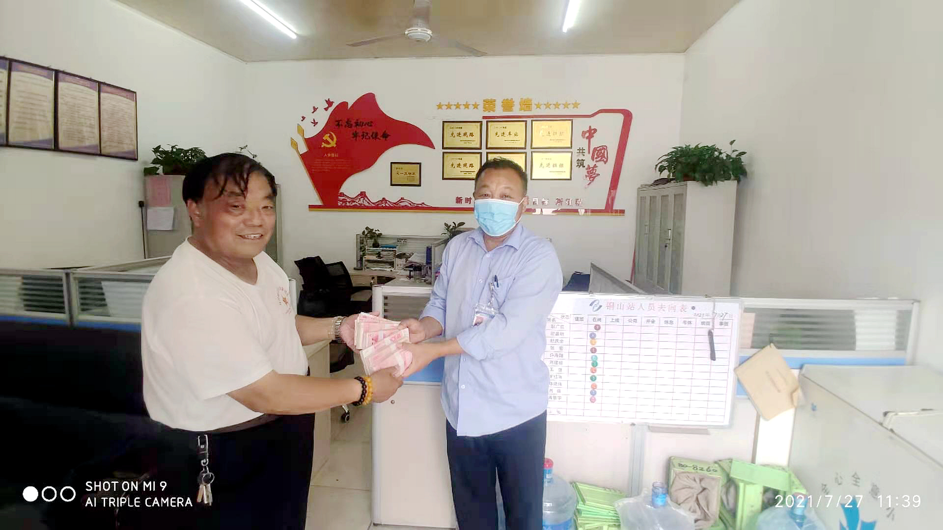 7月27日11時許,83路線駕駛員彭光明駕駛著8235號車回到銅山汽車站,在車廂內(nèi)清掃消毒時,發(fā)現(xiàn)一個乘客遺失的紅色布包,打開布包發(fā)現(xiàn)里面全是打捆的現(xiàn)金,共計6萬元。彭師傅當即將布包交到車站值班室。