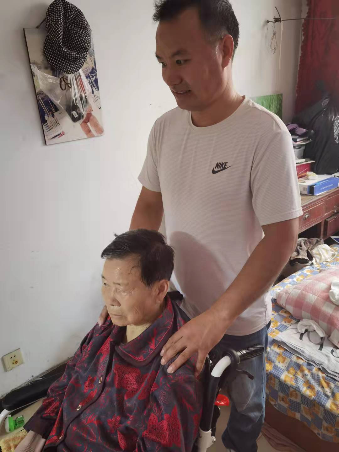 為了不讓老人感到孤獨,只要有時間,他就會推著老人出去走走,和老鄰居們聊聊天。鄰居們說:“這些年,新建照顧老人的點點滴滴我們都看在眼里,這樣耐心照顧毫無血緣關(guān)系的老人,不是誰都能做到的,好人啊。”