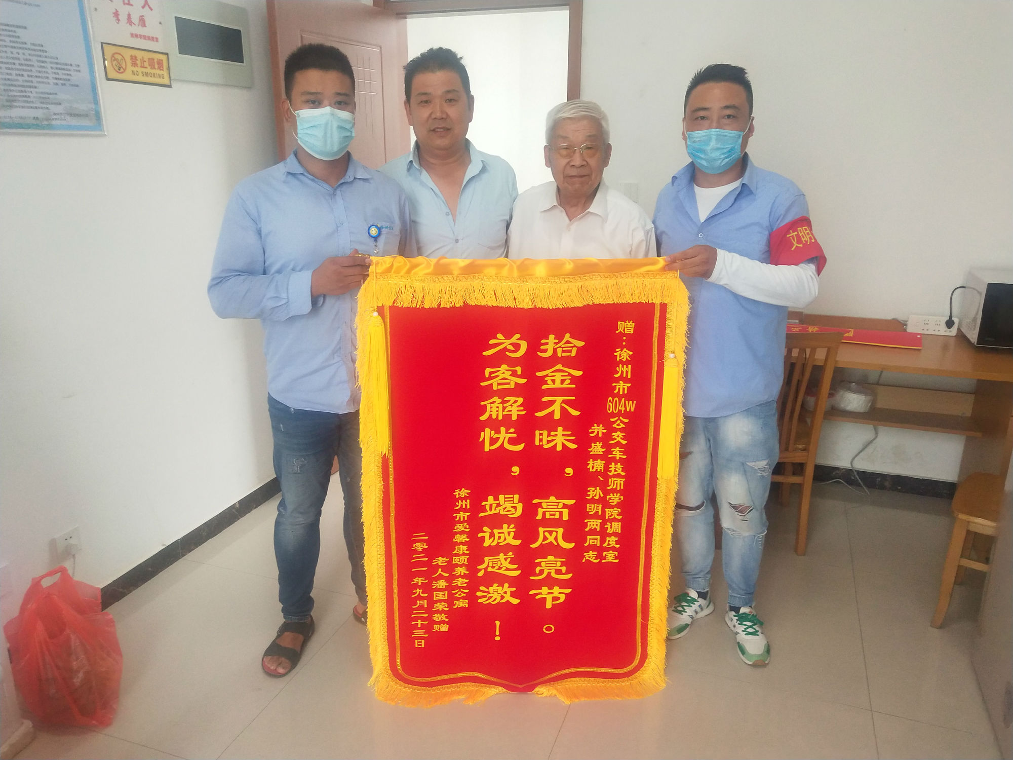 近日,一位老先生在家人的攙扶下,來(lái)到了城北公司604路技師學(xué)院調(diào)度室,將一面印有“拾金不昧,高風(fēng)亮節(jié),為客解憂(yōu),竭誠(chéng)感謝”字樣的錦旗送到604路駕駛員孫明和調(diào)度員盛楠手中。