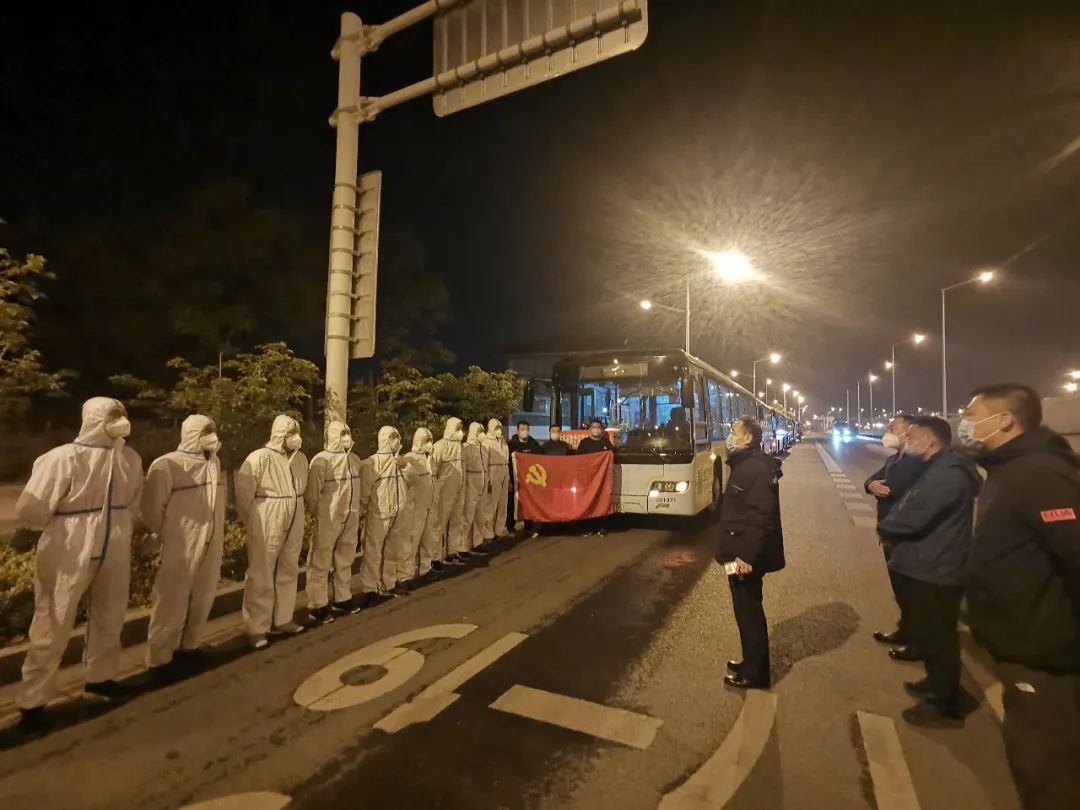 4月22日1:10分集結(jié)完畢。出行前,交控公交集團黨委書記、董事長高守江來到隊員們中間,滿懷激情地激勵大家:交控公交要承擔(dān)起國企責(zé)任,堅決服從全市疫情大局,全力支持睢寧疫情防控工作。大家要團結(jié)一心,到崗以后要服從大局、聽從指揮、遵守紀(jì)律、忠于職守,要切實加強安全防護。大家處在疫情防控的最前沿、第一線,既要發(fā)揚越是艱險越向前的斗爭精神,也要強化自我防護意識,嚴(yán)格按規(guī)程開展工作,全體公交人都期盼你們早日凱旋歸來、平安歸來。
