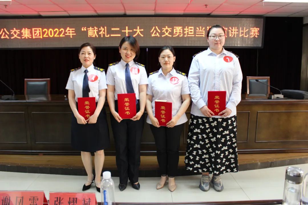 最后,集團黨委副書記、紀委書記、工會主席竇同銀為獲獎選手頒發(fā)了榮譽證書,并對此次演講比賽的意義和效果給予充分肯定。他指出,本次演講比賽主題突出、內(nèi)容豐富,過程緊湊,選手們準備充分,圓滿地完成了比賽。下一步,集團黨委將通過知識競賽、情景黨課、征文比賽等一系列活動,充分展現(xiàn)廣大公交員工在黨的領(lǐng)導下,奮進新征程、建功新時代的精神風貌,團結(jié)引領(lǐng)廣大黨員聽黨話、跟黨走,為迎接二十大的到來貢獻公交力量。