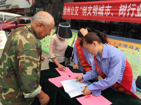 6月16日上午,賈汪公司組織駕乘人員身披綬帶,在賈汪區(qū)中心步行街開展“創(chuàng)文明城市,樹行業(yè)新風(fēng)”便民咨詢活動(dòng),發(fā)放《徐州公交乘車指南》,征求市民建議和意見,受到廣大市民好評(píng)。?xml:namespace>
