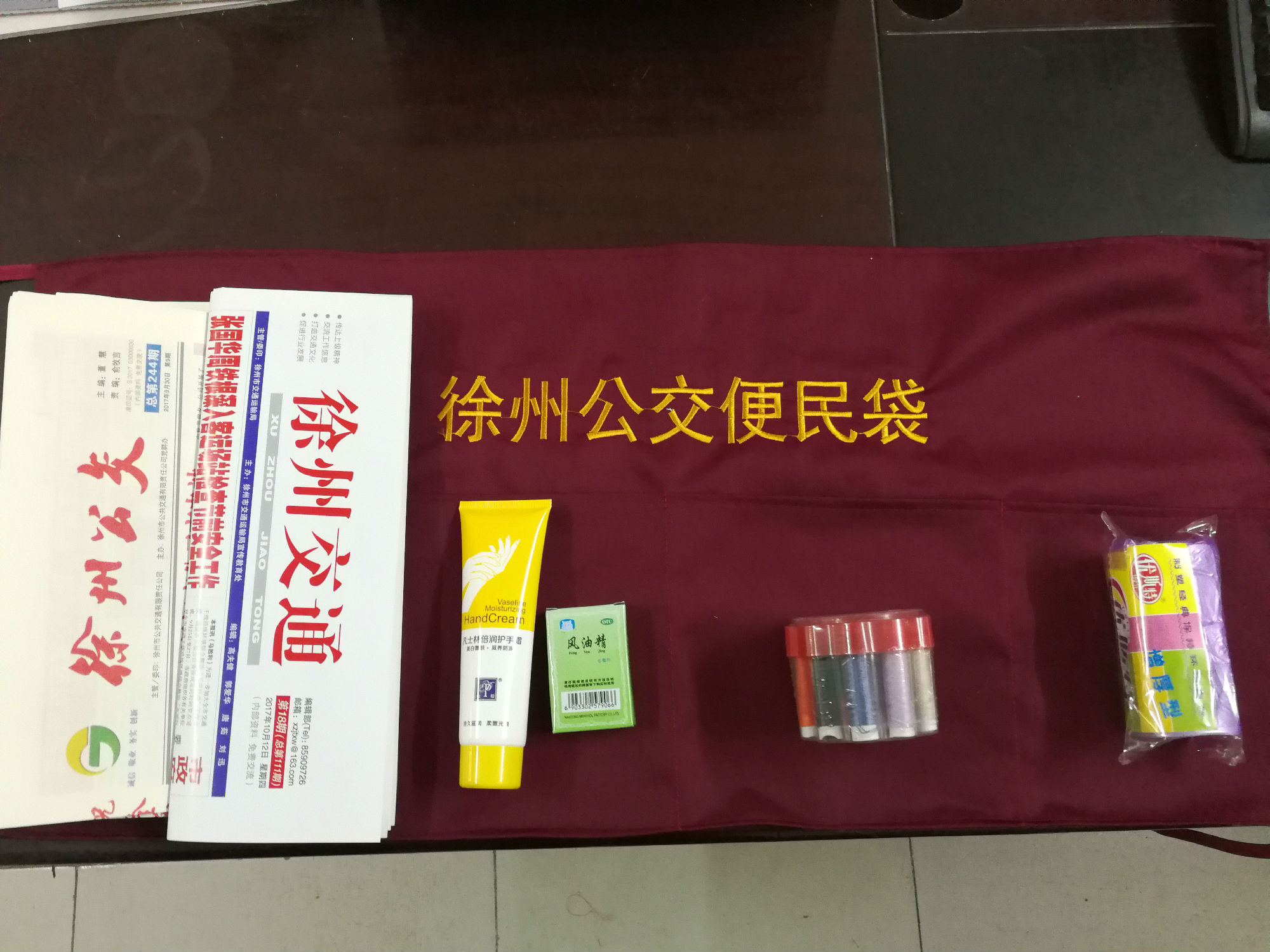 走進車廂,乘客會發(fā)現(xiàn)車廂前排座椅旁懸掛了一個“便民服務袋”,便民袋上有四個口袋,分別裝有乘車須知、一次性衛(wèi)生袋、報紙書刊、針線等,為乘客提供方便。目前,70多個便民袋已經(jīng)安裝完畢。乘客看到后紛紛贊許,十分暖心。